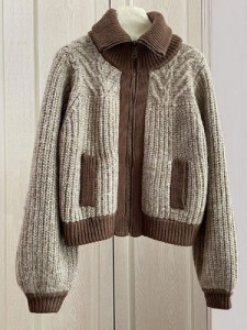 배색 집업가디건