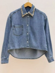 쥬얼장식 데님블라우스
