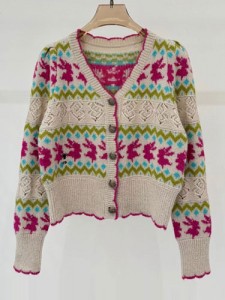 웨이브 자수가디건